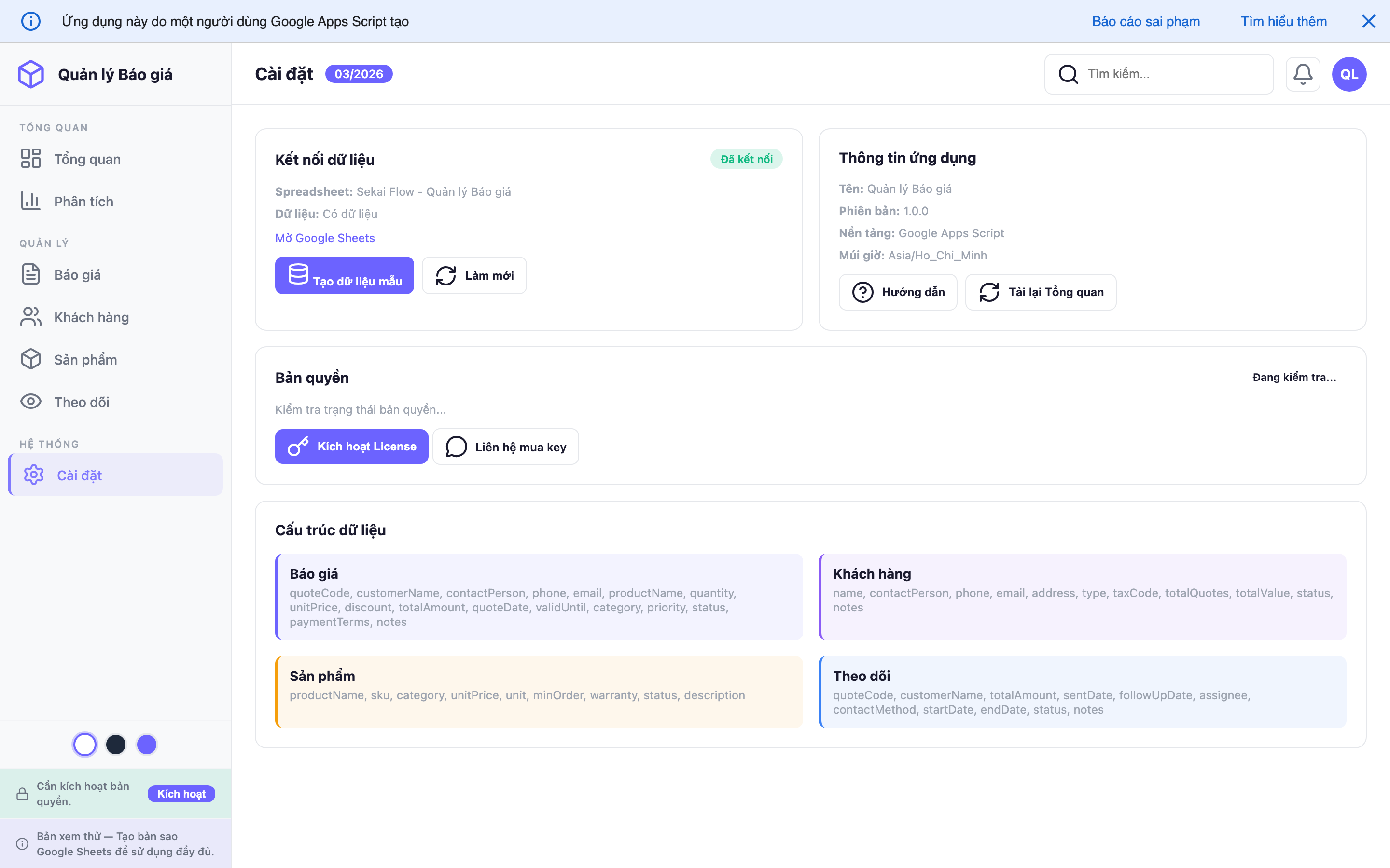 Hệ thống quản lý báo giá chuyên nghiệp trên Google Sheets