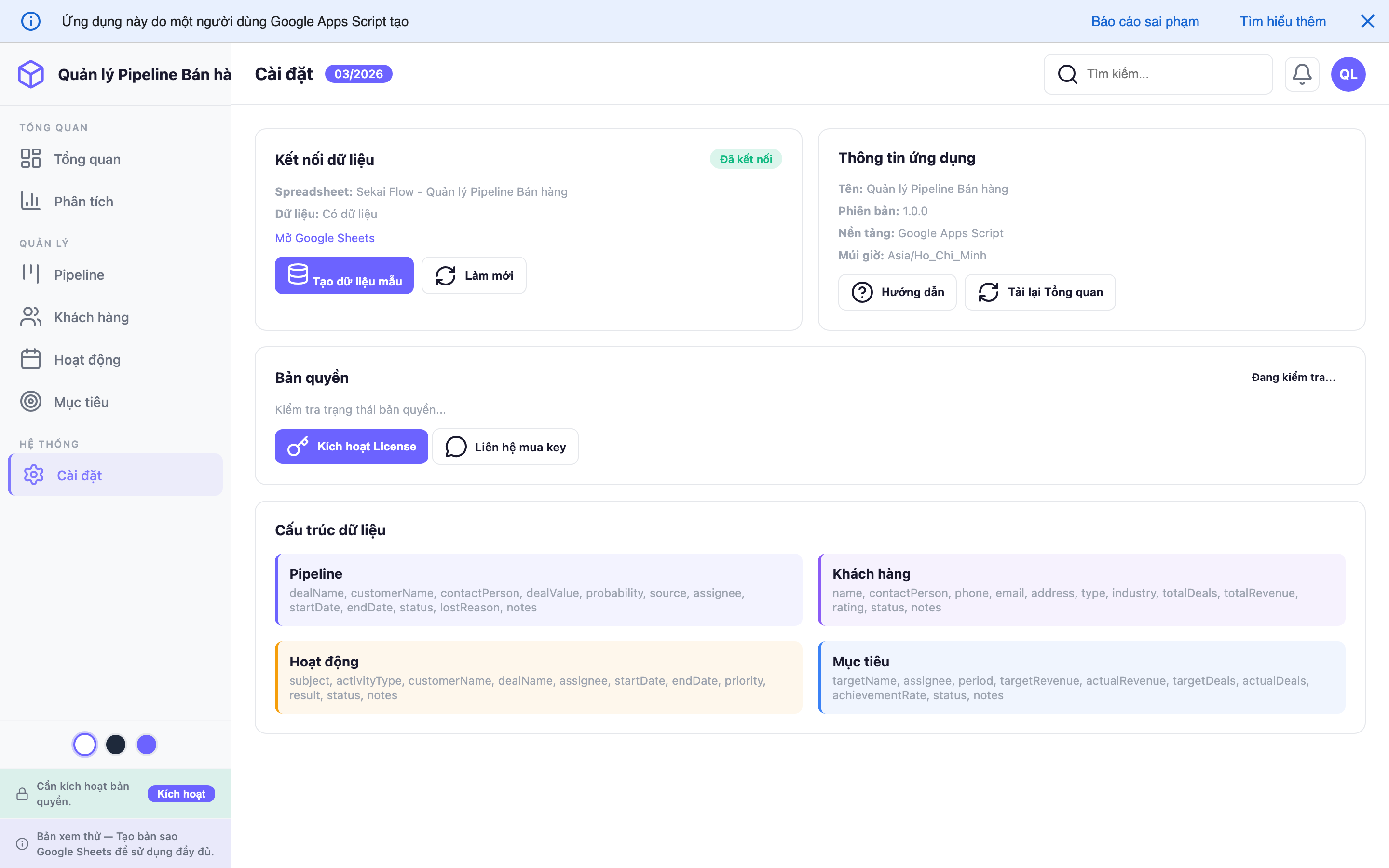 Quản lý pipeline bán hàng và theo dõi deal trên Google Sheets